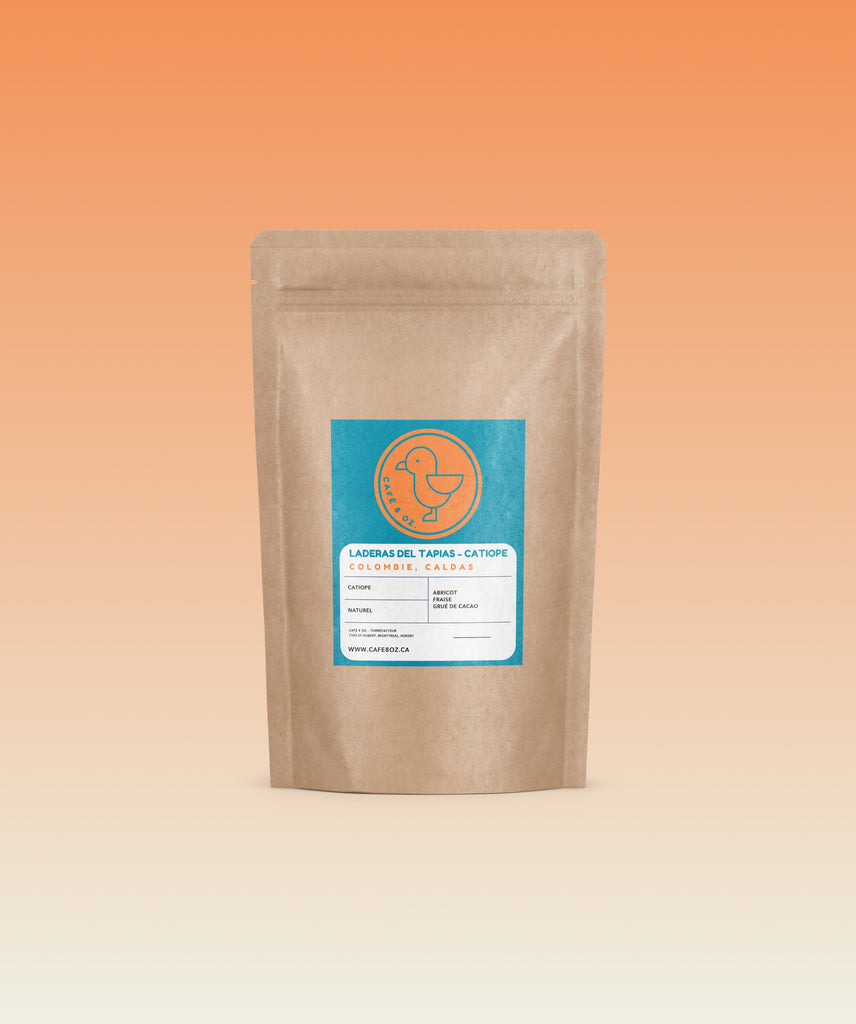 Le Catiope est une variété rare, issue d'une souche éthiopienne croisée avec du Caturra colombien, développée pour ses qualités en tasse exceptionnelles et son adaptation à l’altitude. Cultivé entre 1 800 et 2 000 mètres et séché lentement à l’ombre, ce microlot naturel marie la vivacité des cafés éthiopiens avec la structure propre au terroir colombien.